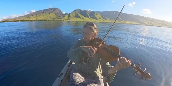 I was first introduced to humpback whales in Alaska in 1996. It was thought with my musician’s ear I could help reveal patterns in the feeding calls that were not readily evident to the scientist. My first musical interaction with the whales was in 1999 in Hawaii. I fed my violin sounds underwater and had a whale come underneath the boat and sing with me. But was I imitating him or he me?
